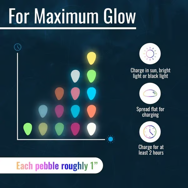 Simply expose these photoluminescent stones to sunlight or artificial light for 4+ hours, and enjoy 7-9 hours of vibrant glow after dark! Perfect for path lighting, garden accents, and creative DIY decor.