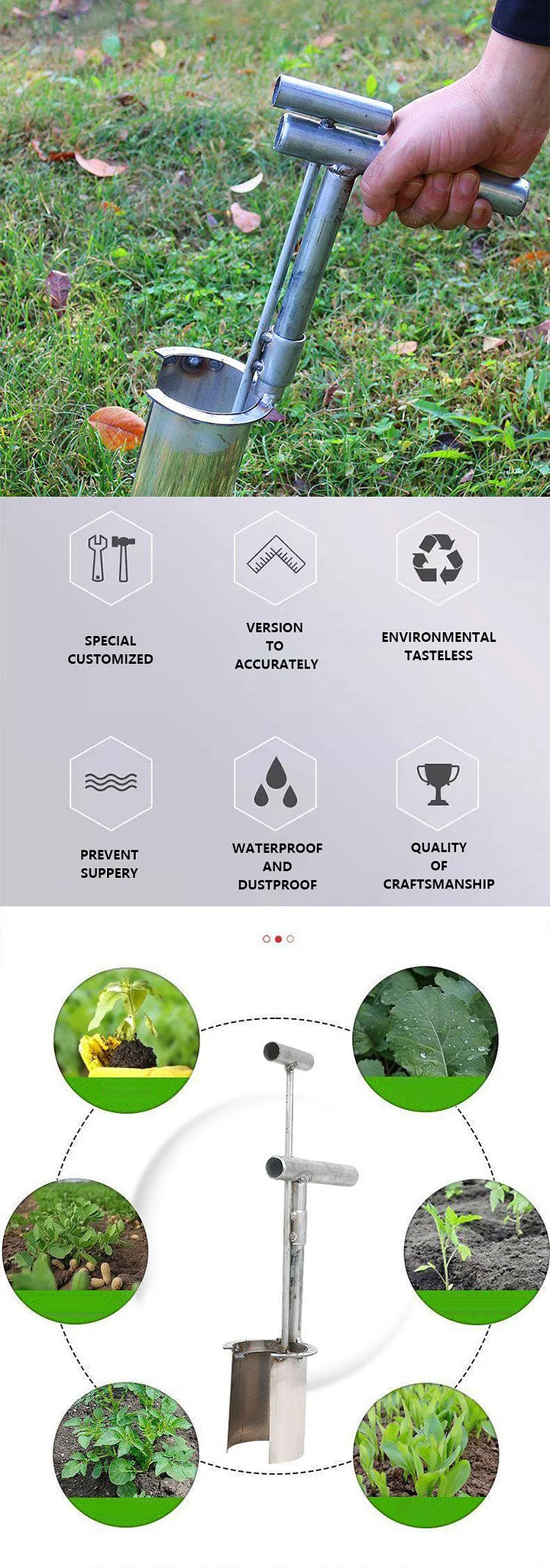 MULTIFUNCTIONAL GARDEN TOOL - For digging holes for various bulbous plants such as tulips, crocuses, dahlias, gladioli, lilies, ground cover and vegetables. It can also be used as a lawn planter, weed remover and soil sampler, making it versatile for your gardening needs.