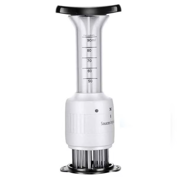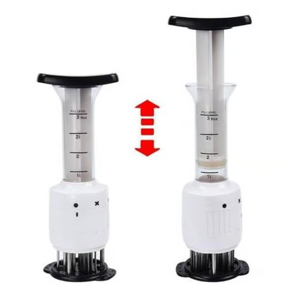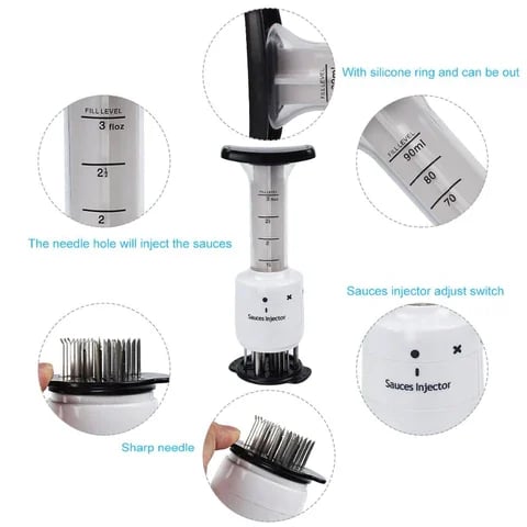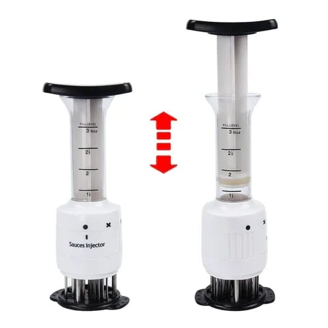 - Easy Flavor Enhancing - Built-in Plunger releases Marinade into meat via 3 Needle-like applicators. It allows quick saturation of the interior of food with flavor enhancing ingredients.