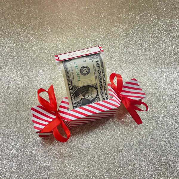 Get ready for a holiday treat with our candy-inspired pull-out money pouch! 🎁Pull the tab to reveal a delightful string of bills emerging from your candy. 🍭