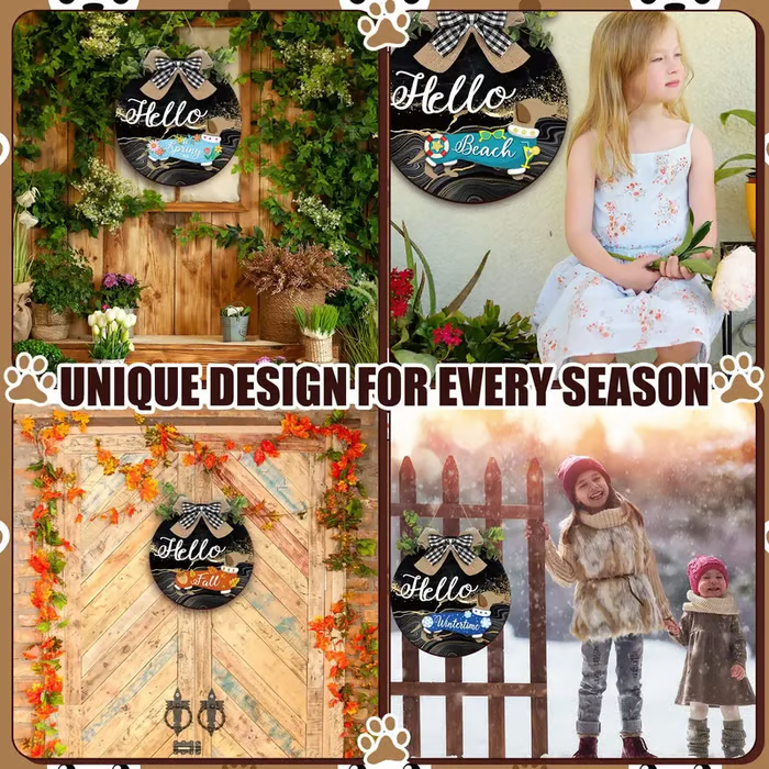 you will be provided with 1 pcs dog welcome sign front door porch decor and 15 pcs interchangeable dog clothes in different seasons