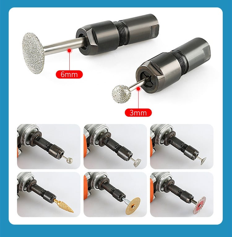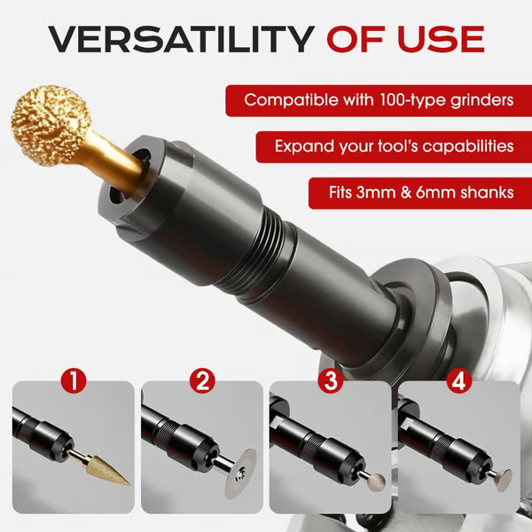- ăVersatile Adapter for Multiple ApplicationsăWhether you're grinding, polishing, or drilling, this grinder adapter gives your tool greater flexibility. Compatible with chuck drill bits, wood carving tools, sanding wheels, and more.