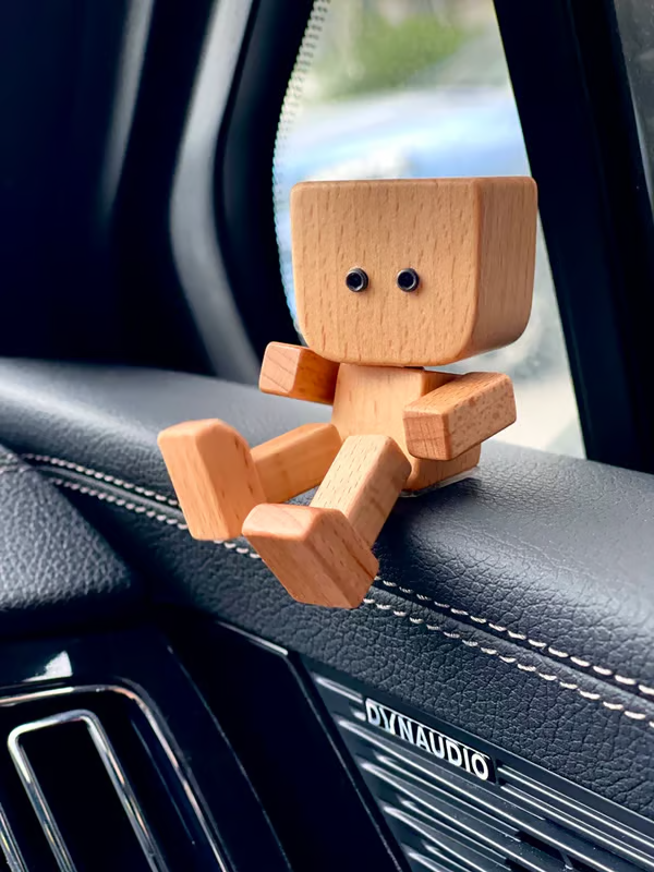 Artisan-Crafted Action Figure Man Car Ornaments: Each handmade wooden figurine is meticulously crafted from premium natural wood, featuring intricate detailing that enhances its charm as a bobblehead dashboard decor piece, perfect for any vehicle’s interior.