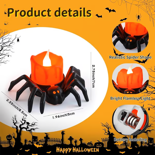 Features aĀ realistic LED flameless candleĀ that mimics the eerie glow of a traditional candleāwithout the fire hazard! TheĀ warm yellow lightĀ andĀ gentle flickeringĀ set the perfect Halloween mood.